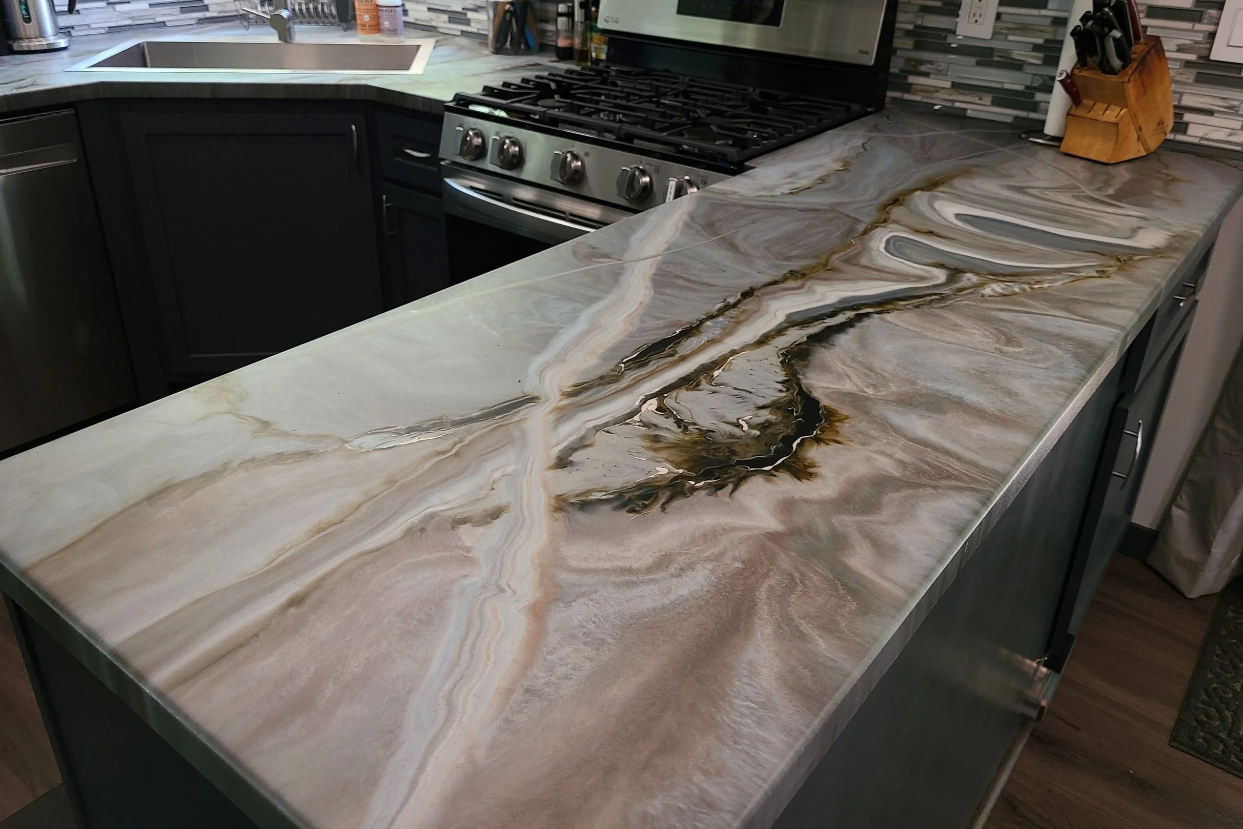 Resin countertops allow for unparalleled creativity. Whether you want a clean, minimalist look or a bold design with vibrant swirls, embedded elements, or translucent layers, the options are limitless